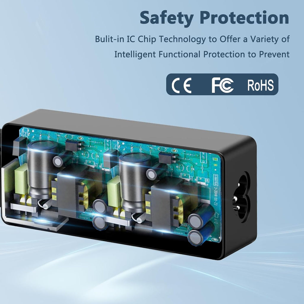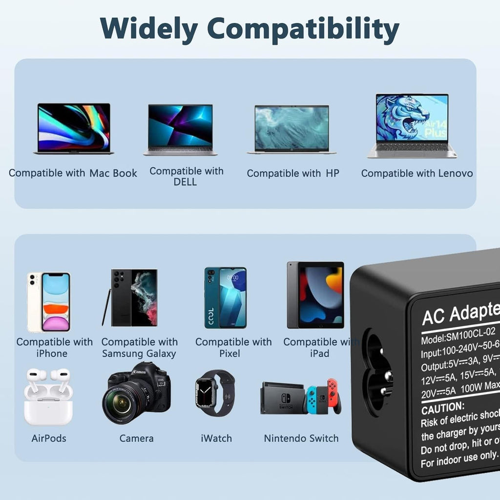 Secure and Quick: As for 100W USB C chargers manufactured with the high quality materials, the smart circuit components of power supply offers fast and efficient charging and providing overcharge protection system/shortcircuit/overload protection/over-heat protection