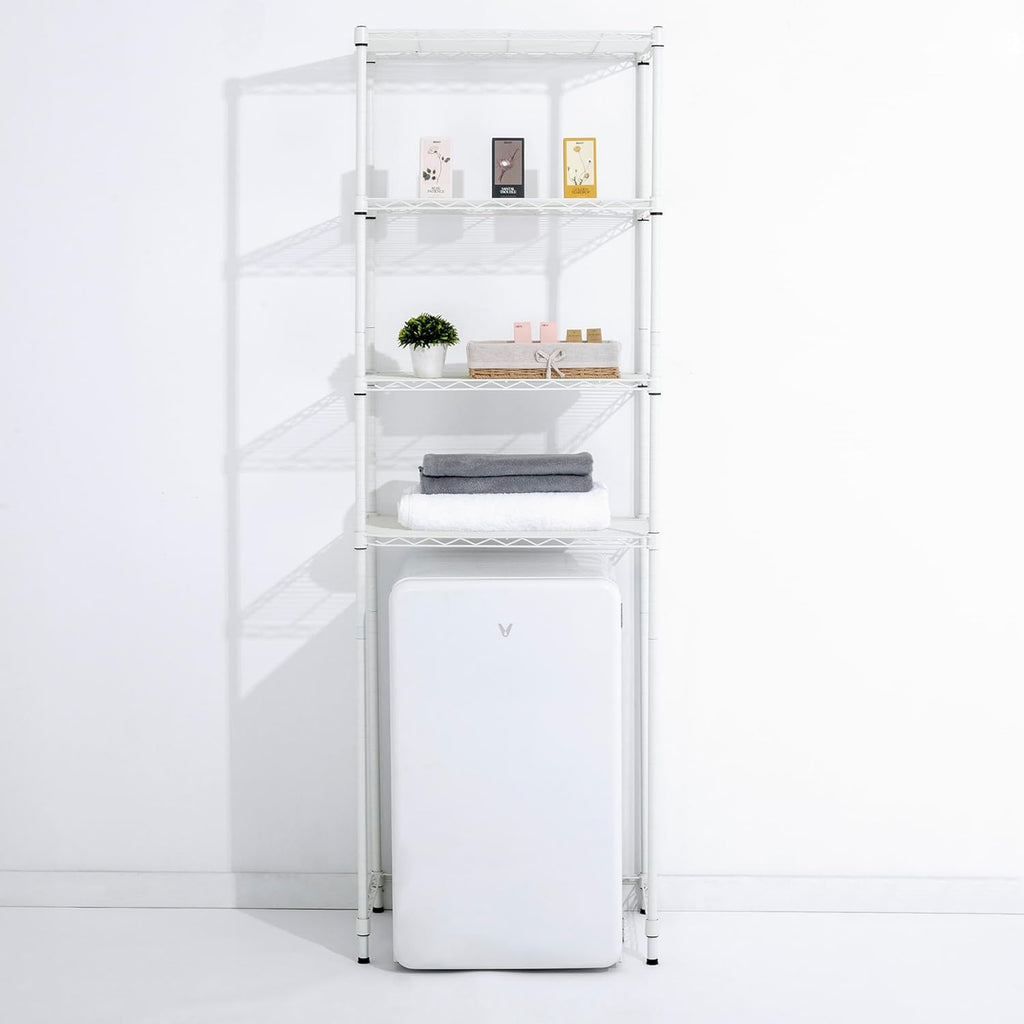 4 Tier Mini Fridge Shelf Adjustable Height Storage Shelf Metal Storage Rack Mini Fridge and Microwave Stand for Dorm, Kitchen, Office, White (OPEN BOX)